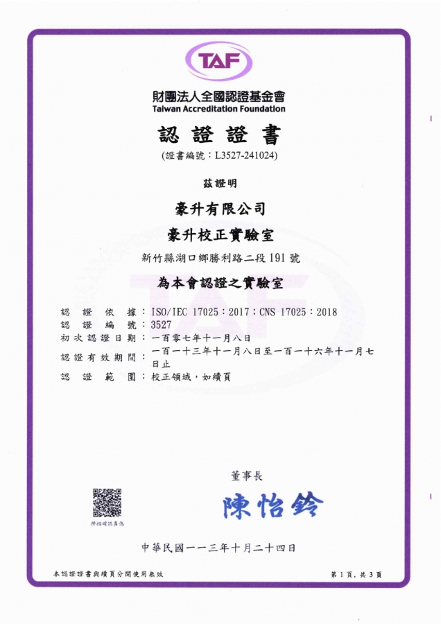 豪升TAF_證書 3527